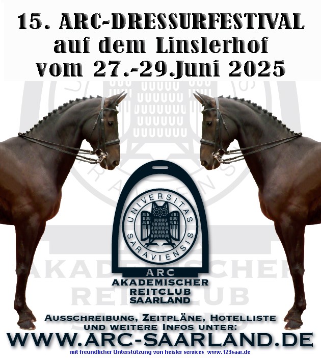 Wir fördern nicht nur den Studentenreitsport an den Hochschulen des Saarlandes und die Starts unserer studierenden Mitglieder bei Studententurnieren im gesamten Bundesgebiet, sondern führen auch regelmäßig Lehrgänge durch. Wir organisieren Ausritte, Fahrten zu großen Pferdesportveranstaltungen und eigene Studententurniere. Auf Gutscheinbasis können bis zu 20,- EUR Zuschuß zu den normalen Reitstunden auf Schulpferden gezahlt werden. Es besteht die Möglichkeit, als Stammitglied auf Turnieren für den ARC zu starten.